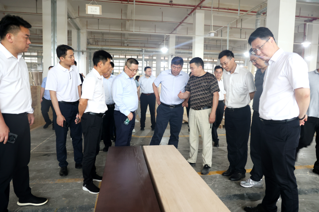 6月29日上午,在瑞昌园区,单忠立深入了解园区铁路专用线、港口码头现场及中林大家居展厅,并实地考察了园区入驻企业生产加工情况。