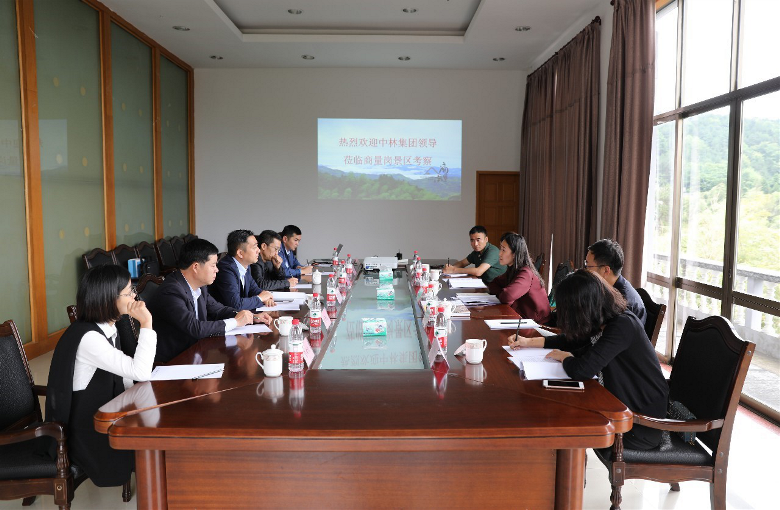 宁波中林森林旅游发展有限公司副总经理宋悦向调研组一行详细介绍了项目的业务模式、运营情况及未来发展规划。曹鈜淼对商量岗依托林业发展生态旅游的产业模式表示肯定。他希望,中林商量岗抓住新时代新机遇,整合利用现有资源,探索新型发展路径,发挥中林集团产业转型升级的排头兵作用。他表示,国资委规划发展局将大力支持商量岗景区项目建设运营工作。