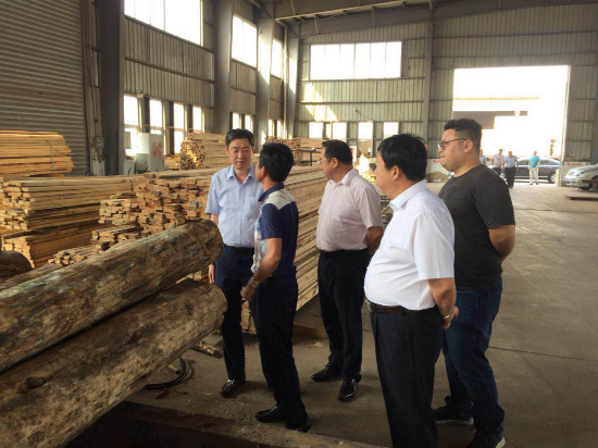 天津中林天立实业有限公司董事长梁昊、总经理徐春腾,林产品公司企业管理部副经理那麟伟,曹妃甸区政府木材服务中心主任刘天龙等陪同考察。