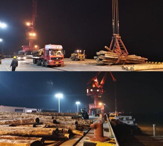 公司积极协调船代公司,组织货源,安排运输,确保原木早日到港。截止目前,已完成6艘共3.6万立方米原木货轮的卸载作业,为企业复工复产提供了有力的原材料保障。