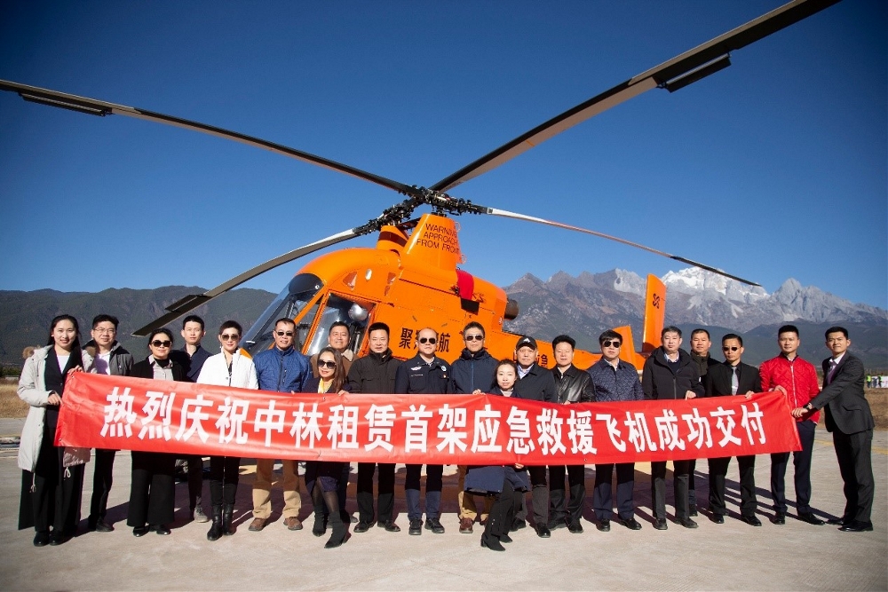 朱成庆副总经理在交付仪式上做了总结性讲话,对丽江市委市政府、应急管理部南方航空护林总站的支持表示衷心的感谢。他指出,随着我国森林资源储备的不断增长,森林防灾防火工作得到党中央国务院的高度重视和全社会的普遍关注。航空护林作为最为先进的防火灭火措施之一,是保护林区改革、发展和稳定,守护林区人民生命财产的重要力量。历经半年时间,在应急管理部南方航空护林总站的指导下,中林租赁、聚翔通航与各方通力合作,顺利完成本架飞机的交付工作。卡曼直升机项目成功落地,是中林租赁参与航空应急救援事业的起点,希望各方能继续在南方航空护林总站的指导下,秉承精诚合作的精神,发挥各自的产业优势,加强更深层次的交流。