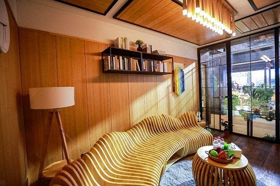 靖江国林木业公司作为进博会展馆内的第一家也是唯一装配式木结构建筑企业,顺应全球倡导低碳发展的大趋势,积极践行国家绿色双碳战略,以实际行动助力传播环保绿色的低碳理念,国林“悦动”木墅搭载了绿色能源生态系统,包括太阳能发电系统、净水系统、污水处理系统等绿色环保技术,通过降低资源和能源的消耗、减少各种废物的产生等方式,实现建筑与自然的共生。按照“绿色进博”标准,切实减少能源消耗,提高资源重复及再生利用率,发挥绿色经济示范作用。