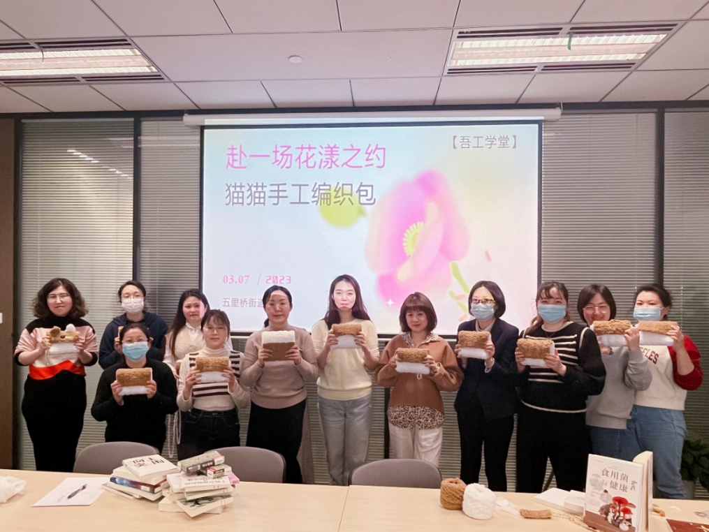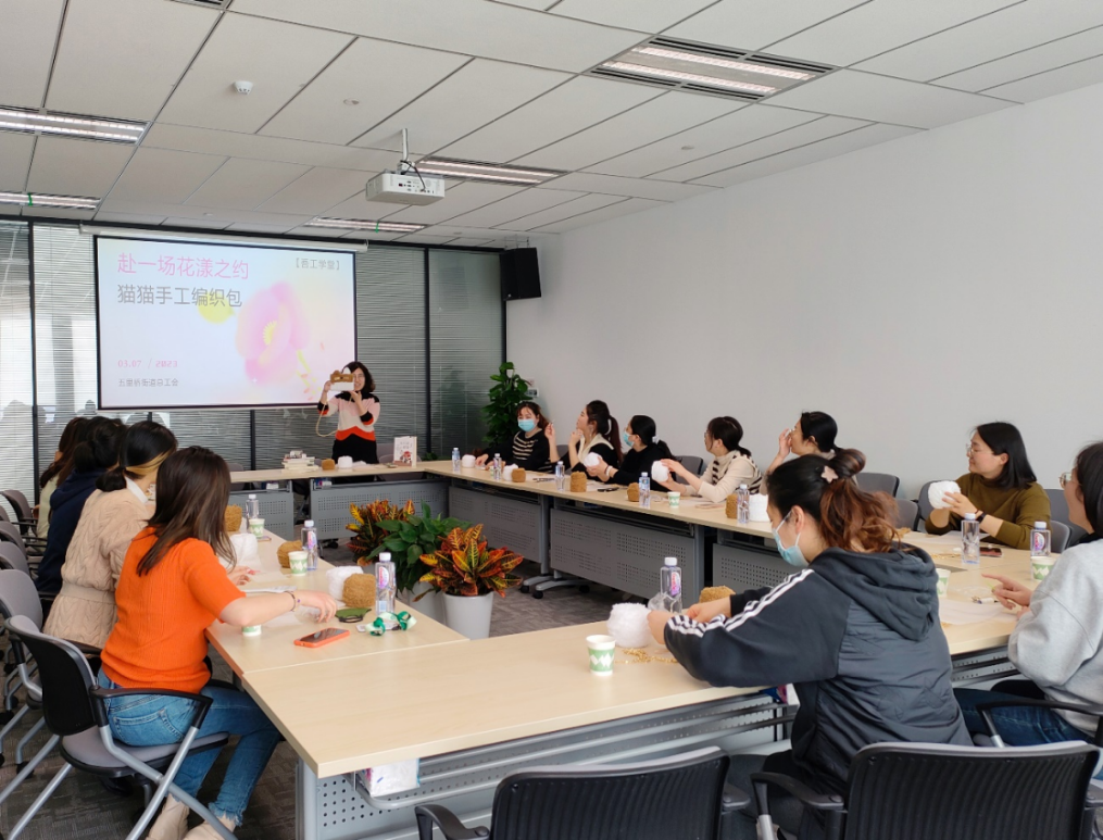 上海胜握胜林业有限公司举办了“赴一场花漾之约”猫猫手工编织包制作主题活动,邀请授课老师向大家介绍编制工具和材料,讲解丈量绒线、缠绕及收针、锁边等制作方法,通过现场操作,在同事间的亲密协作之下,一只只可爱的毛绒小猫“诞生”在女职工们的巧手之下。活动的成功举办,体现了公司工会竭尽所能为女职工争取权益、不断提升服务能力和活动品质,为职工繁忙工作之外的精神文化生活提供丰富的载体。切实增强了职工的归属感与认同感,更好地将精力专注投入到工作、生活的各个领域。