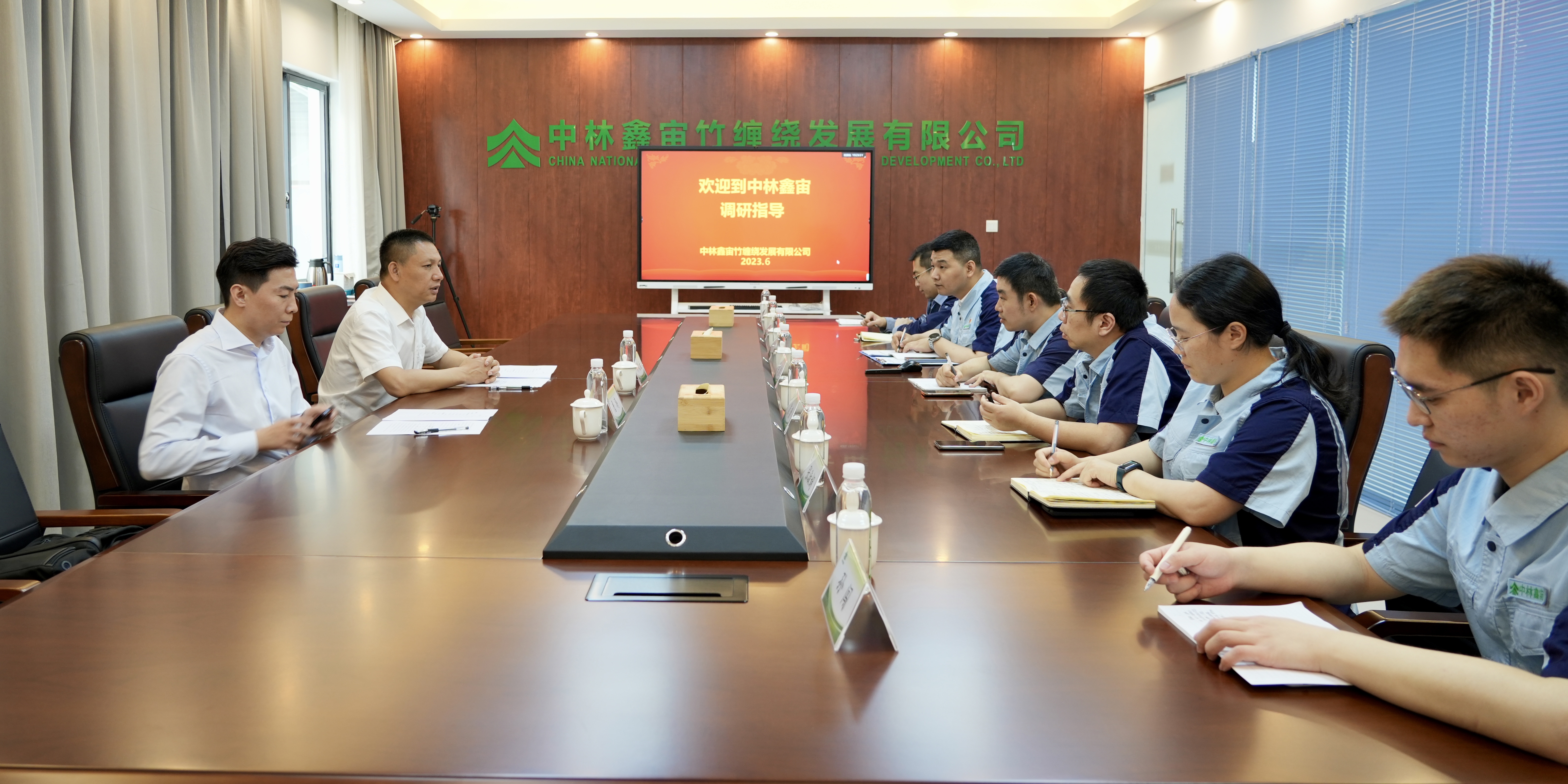 柳凤柱对中林鑫宙公司在创建世界一流专精特新示范企业、推动竹缠绕规模化产业化发展方面取得的成绩表示肯定。他强调,要聚焦“学思想、强党性、重实践、建新功”的总要求,坚持认识与实践相结合、理论与实际相联系,努力将习近平新时代中国特色社会主义思想转化为公司科技创新的强大动力,以科学的态度对待科学、以真理的精神追求真理,不断推进竹缠绕技术迭代升级,推动竹缠绕产业高质量发展。一要坚持发展导向,抢抓国家“双碳”战略、乡村振兴战略以及“以竹代塑”倡议的战略机遇,瞄准竹缠绕产业未来发展方向,推动竹木代塑、代钢、代砼的技术规模化发展应用;二要坚持创新导向,以科技自强塑造企业核心竞争力,加大技术研发投入,聚焦竹缠绕产业链技术难题,进一步优化创新机制,建立企业人才库,加快建设竹缠绕领域创新高地;三要坚持市场导向,把调查研究同竹缠绕产业发展紧密结合起来,坚持“调”“研”“用”并重,深入挖掘客户需求,全线发力降本增效,进一步扩大产业布局及市场应用领域,努力打造优质“中林竹缠绕”品牌形象。