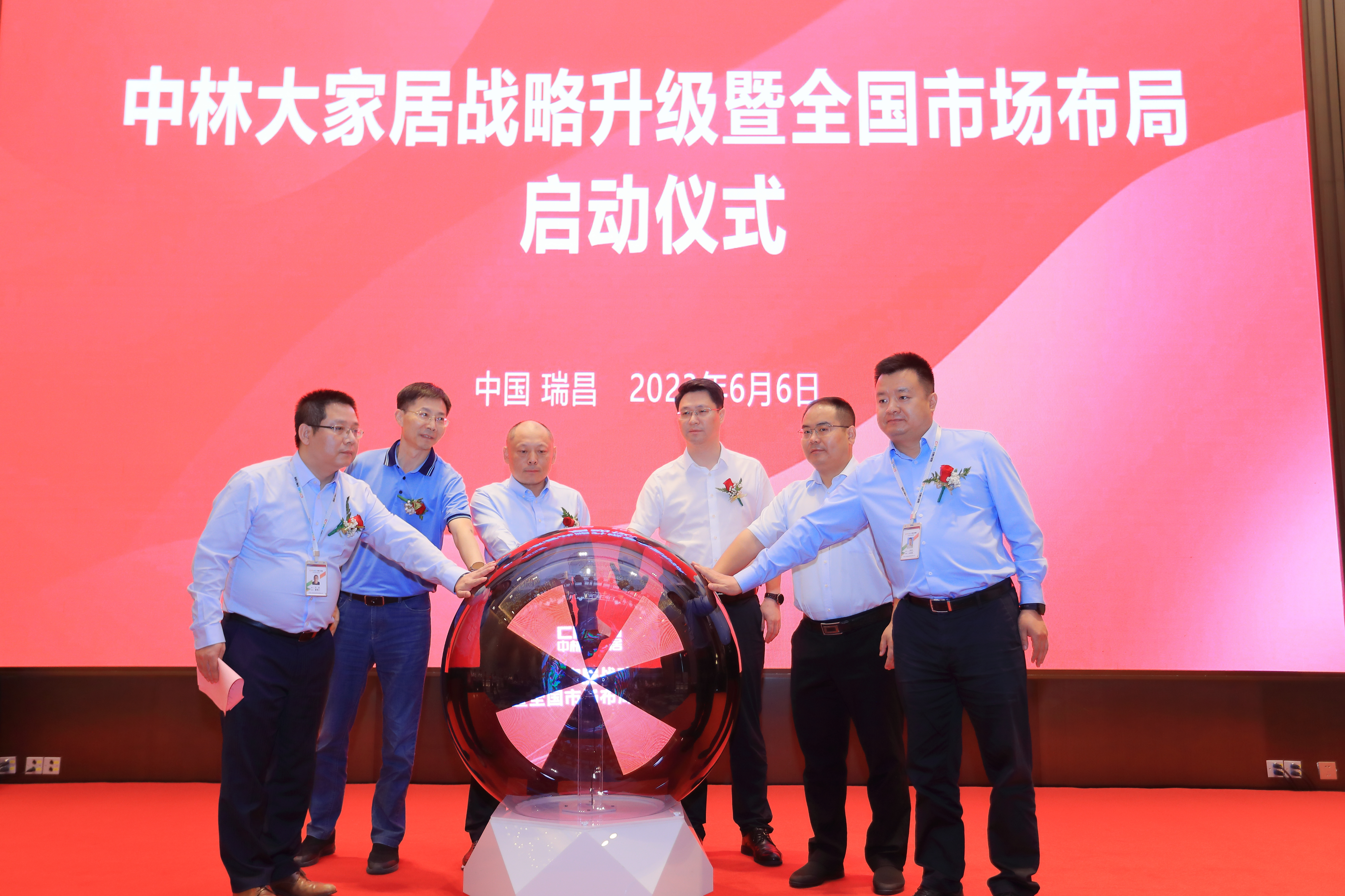 在热烈的掌声中,相关领导一同按下启动球,宣布中林大家居公司全面开启“布局全国市场”新发展战略。
