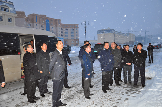 11月12日,国家海关总署党组书记、署长于广洲在黑龙江省副省长孙尧、绥芬河市市长王居堂及市政府相领导的陪同下,冒雪到绥芬河国林木业城项目参观视察。
