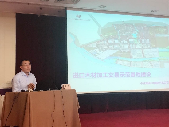 公司副总经理、促进会秘书长沈北灵作了进口木材加工交易示范基地建设专题报告。