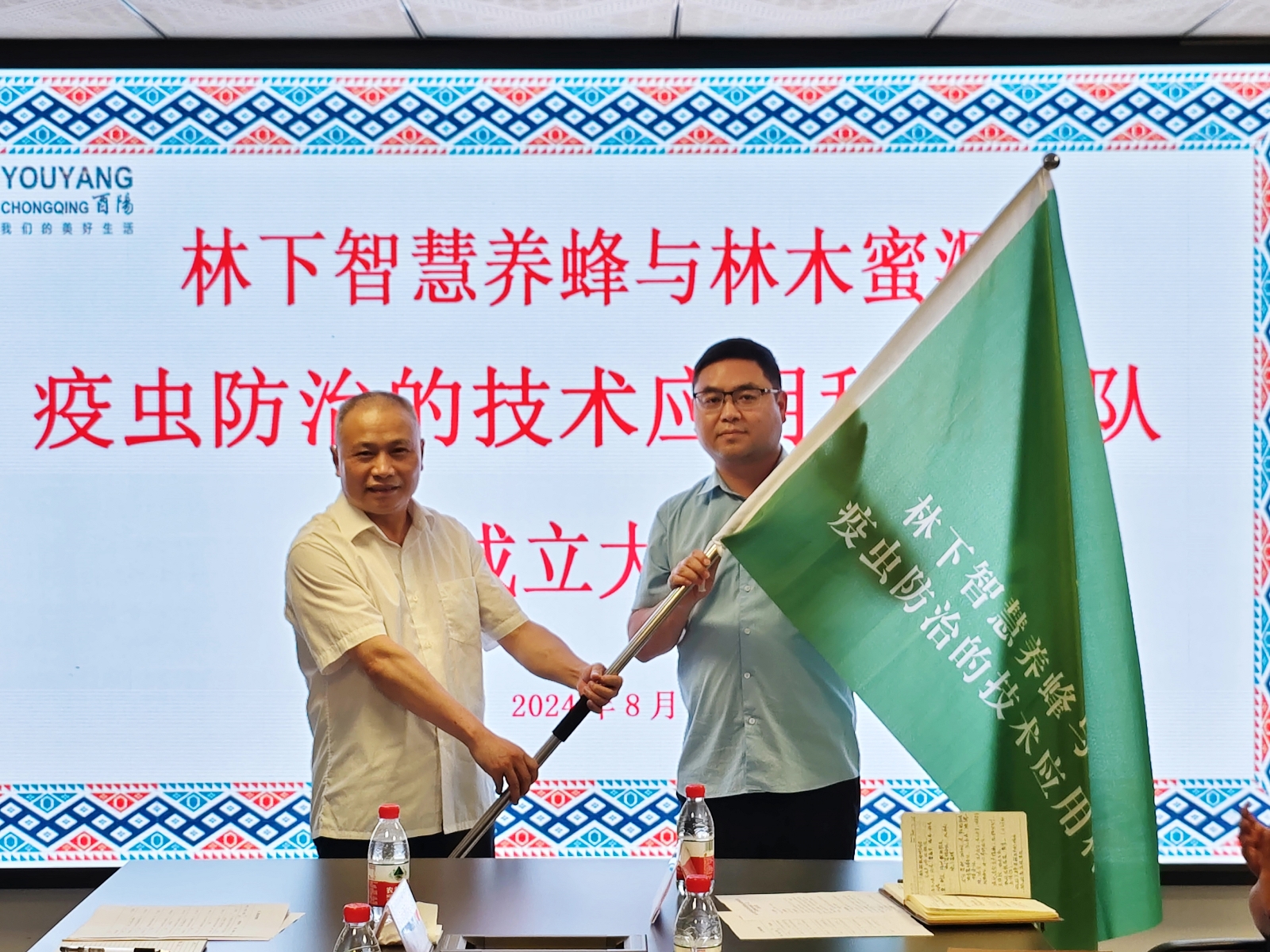 会议传达了重庆林投公司《关于正式成立首批科技创新团队的通知》,宣布林下智慧养蜂与疫虫防治的技术应用科创团队正式成立,并向科创团队技术负责人授旗。会议对团队项目研发、成果转化、产业落地、宣传策划、政策争取等任务进行了分工。科创团队成员立足自身岗位及优势特长,就如何充分发挥双王共育科学化养殖科创示范效应,促进双王共育技术在武陵山中蜂成熟蜜生产的应用与转化,推动酉州中蜂产业基地科技自立自强等主题作了交流发言。