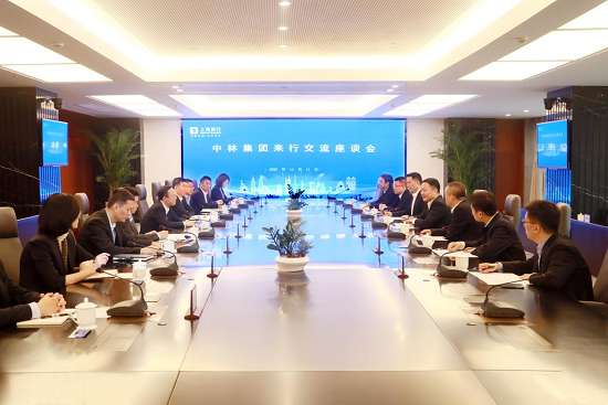 11月11日,中林集团党委书记、董事长余红辉与上海银行党委副书记、行长朱健在沪举行工作会谈,双方就进一步深化银企合作进行深入交流。