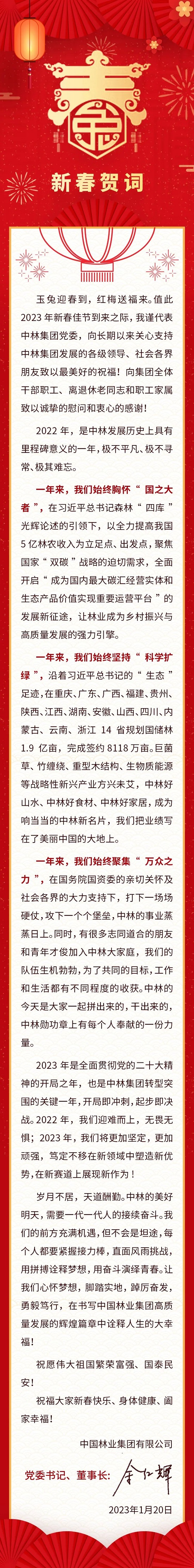 党委书记、董事长余红辉新春贺词|聚集万众之力 融入国之大者