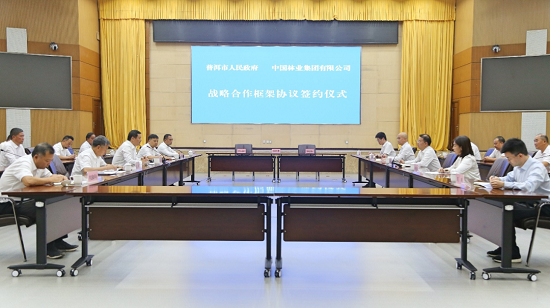 5月26日,中林集团党委委员、副总经理李留彬在普洱与普洱市委副书记、市长王刚会谈,并共同见证中林集团与普洱市人民政府签署战略合作协议。中林集团森林资源管理部副部长黄楚婷与普洱市副市长吴学榕分别代表双方签约。