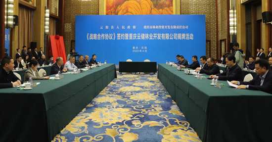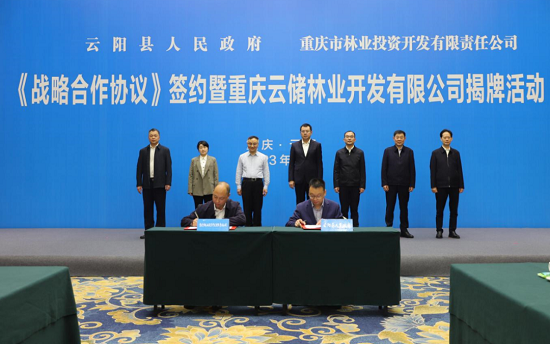 4月3日上午,重庆市林业投资开发有限责任公司与云阳县人民政府签署国家储备林建设《战略合作协议》,并现场举行了“重庆云储林业开发有限公司”揭牌、授印仪式。重庆市林业局党组成员、副局长王声斌,重庆林投公司党总支书记、董事长罗廉,云阳县委书记覃昌德,云阳县委副书记、县长李茂涛出席签约仪式,县委常委、常务副县长甘露主持签约仪式。