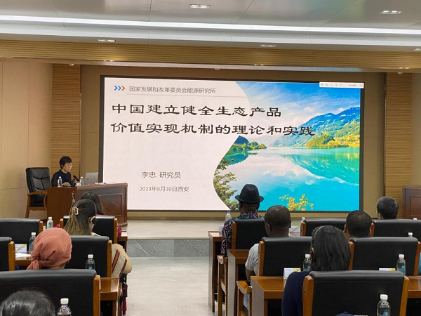8月30日,研修班学员赴临潼区围绕生态产品进行了参观调研,临潼区副区长王鹏对当地石榴产业发展情况进行了介绍。参观结束后,中林集团邀请国家发改委能源研究所副所长、研究员李忠作《中国建立健全生态产品价值实现理论和实践探索》专题讲座,对中国生态产品价值实现相关工作的发展沿革、相关政策及路径规划进行了解读。8月31日,中林集团邀请中国科学院生态环境研究中心郑华研究员作《生态系统生产总值(GEP)核算与在中国的政策应用》专题讲座,围绕GEP概念、GEP核算、GEP应用等方面展开授课。随后研修班学员到访中林生态环境科技有限公司,针对中林集团在生态修复方向的技术储备做了详细调研。