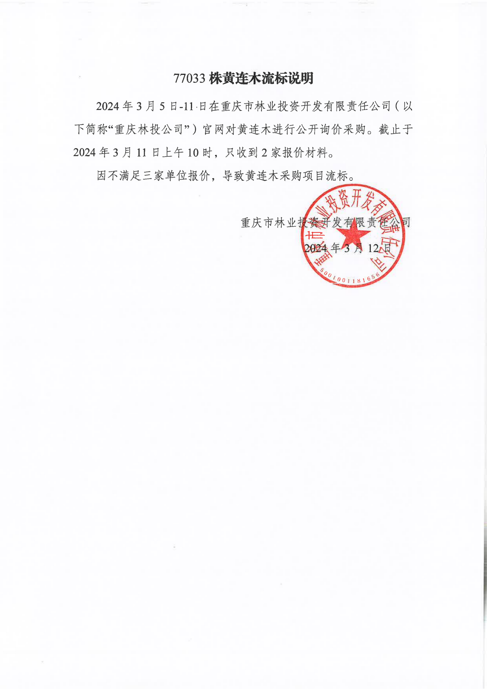 77033株黄连木流标说明
