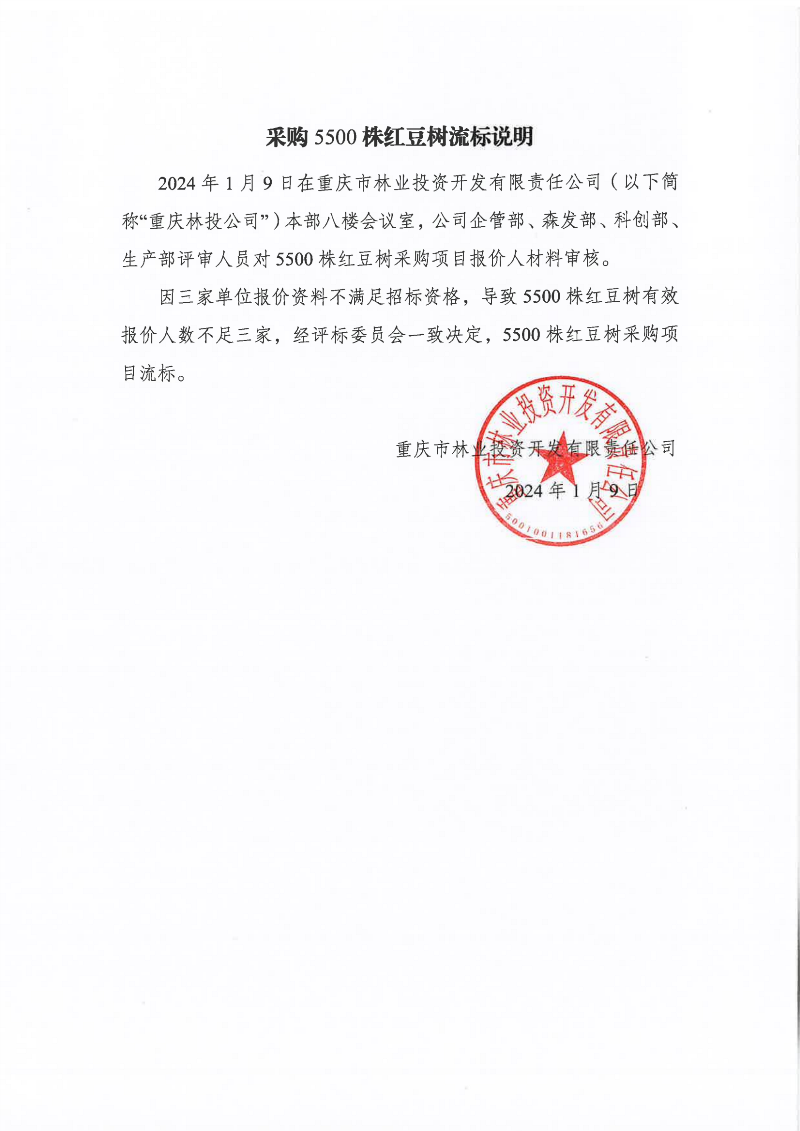 采购5500株红豆树流标说明
