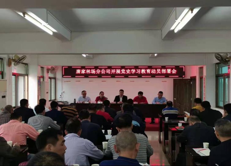 3月25日上午,唐林分公司党总支召开党史学习教育动员部署会。分公司党总支书记、经理蔡华杰作动员讲话,会上传达中央、国资委、集团公司、广东省、湛江市党史学习教育动员会精神和雷林公司党委书记、执行董事潘松海在党史学习教育动员部署会上的讲话精神及党史学习教育工作实施方案,副经理麦明主持会议,分公司全体党员参加会议。