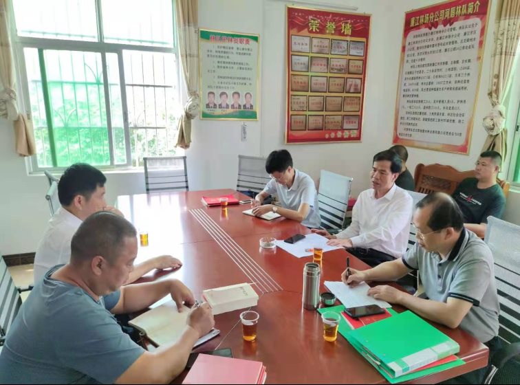 4月15日,公司纪委书记陈忠桂一行到廉江林场分公司基层林队检查督导党史学习教育及党风廉政建设工作,并与林场及林队工作人员进行座谈交流。分公司党总支书记林顺陪同检查。