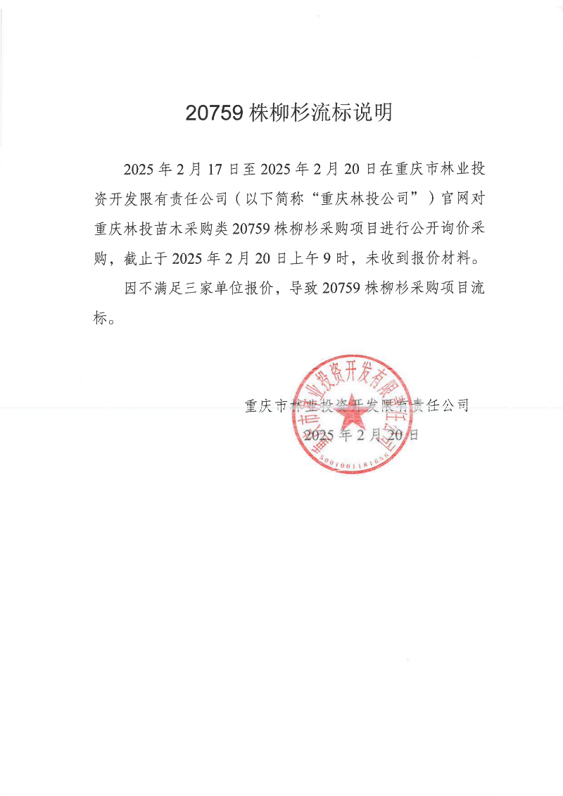 重庆林投苗木采购类20759株柳杉采购项目流标说明
