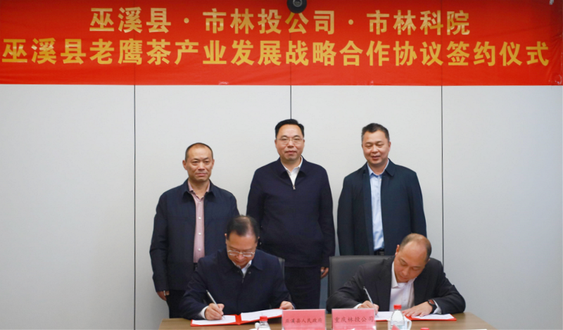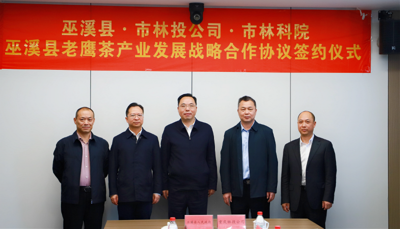 4月4日,重庆市林业投资开发有限责任公司与巫溪县在公司本部大楼召开国家储备林建设暨巫溪县老鹰茶产业发展座谈会,并签订共同推进老鹰茶产业项目建设战略合作协议。重庆林投公司董事长罗廉,重庆林投公司总经理向国伟,巫溪县委书记李卫东、县长王中,重庆市林业科学研究院院长石胜璋出席座谈会暨签约仪式,重庆林投公司副总经理黄珍富主持。