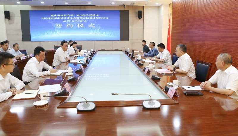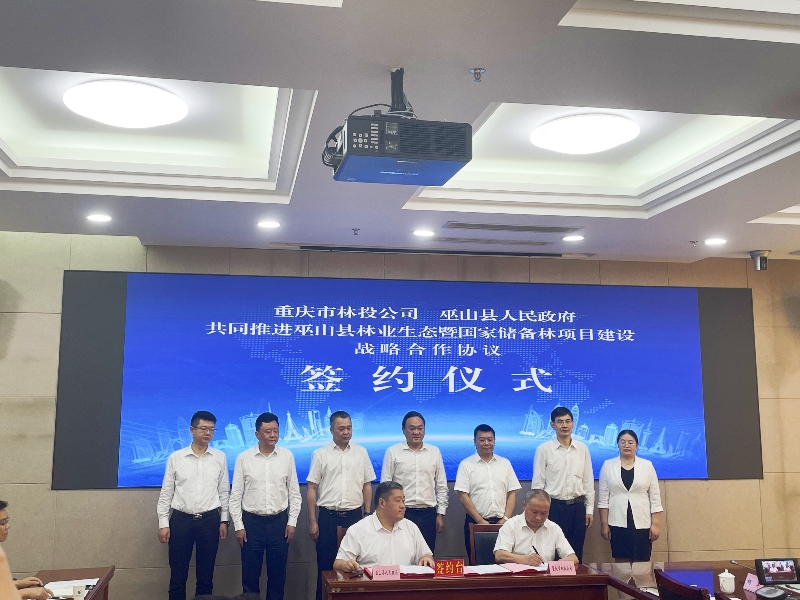 6月9日上午,重庆市林业投资开发有限责任公司与巫山县人民政府签署《共同推进巫山县林业生态暨国家储备林项目建设战略合作协议》。重庆市林业局党组成员、副局长王定富,重庆林投公司党总支书记、董事长罗廉,巫山县委书记曹邦兴、县人大常委主任邓昌君、县政协主席柴承刚出席签约仪式。