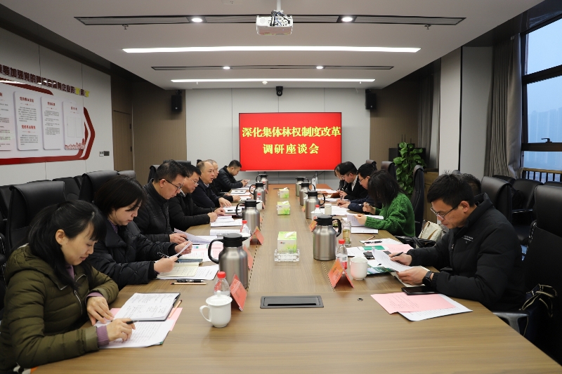 重庆市林业局一级巡视员王定富主持座谈会,市林业局改革处处长刘洪平、产业处处长聂绩,重庆林投公司总经理向国伟、副总经理黄珍富参加座谈会。