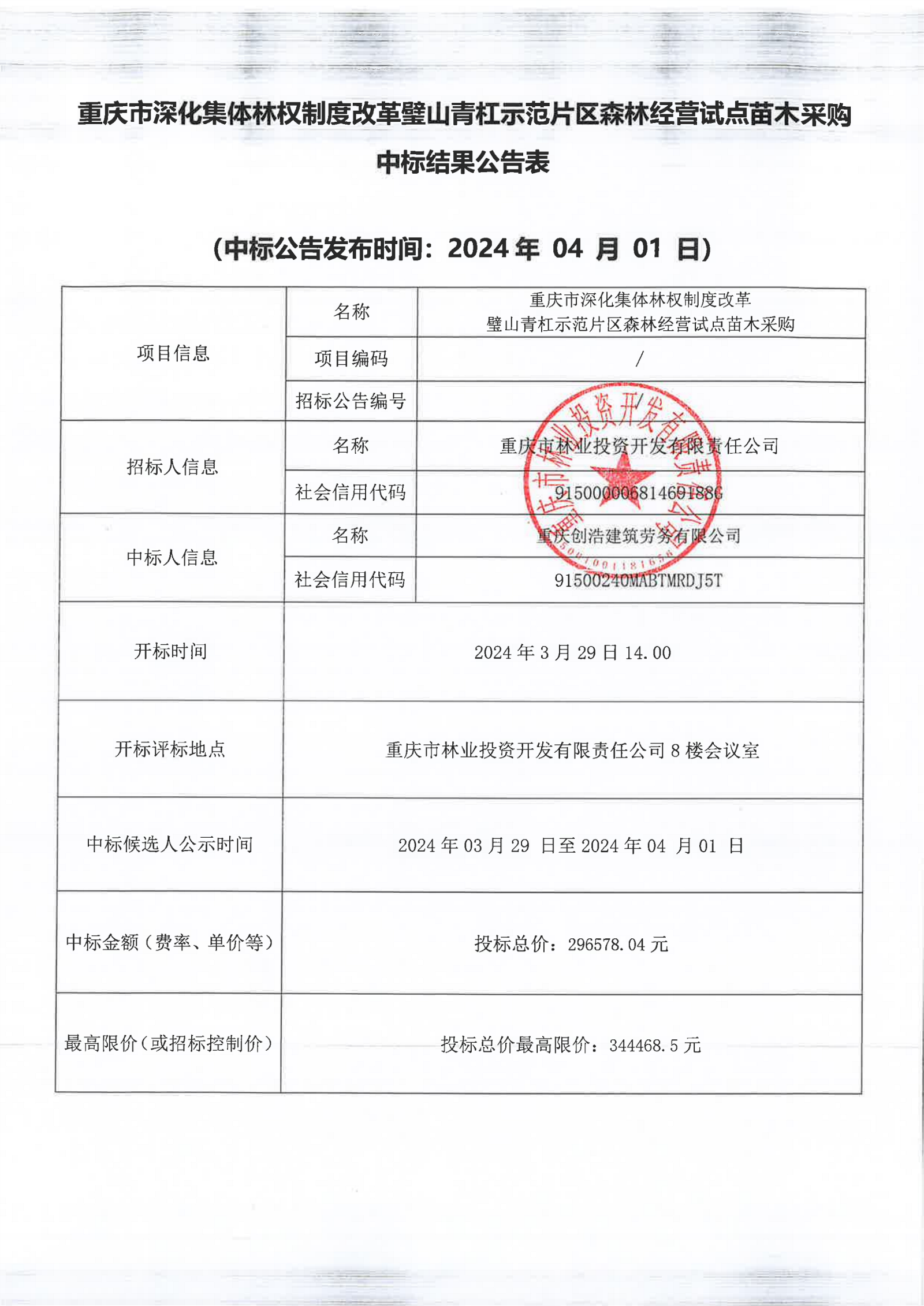 中标结果公告重庆市深化集体林权制度改革璧山青杠示范片区森林经营试点苗木采购项目_00