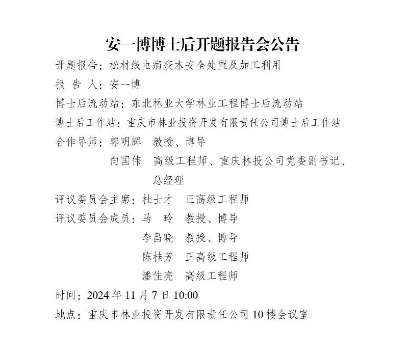 安一博博士后开题报告会公告
