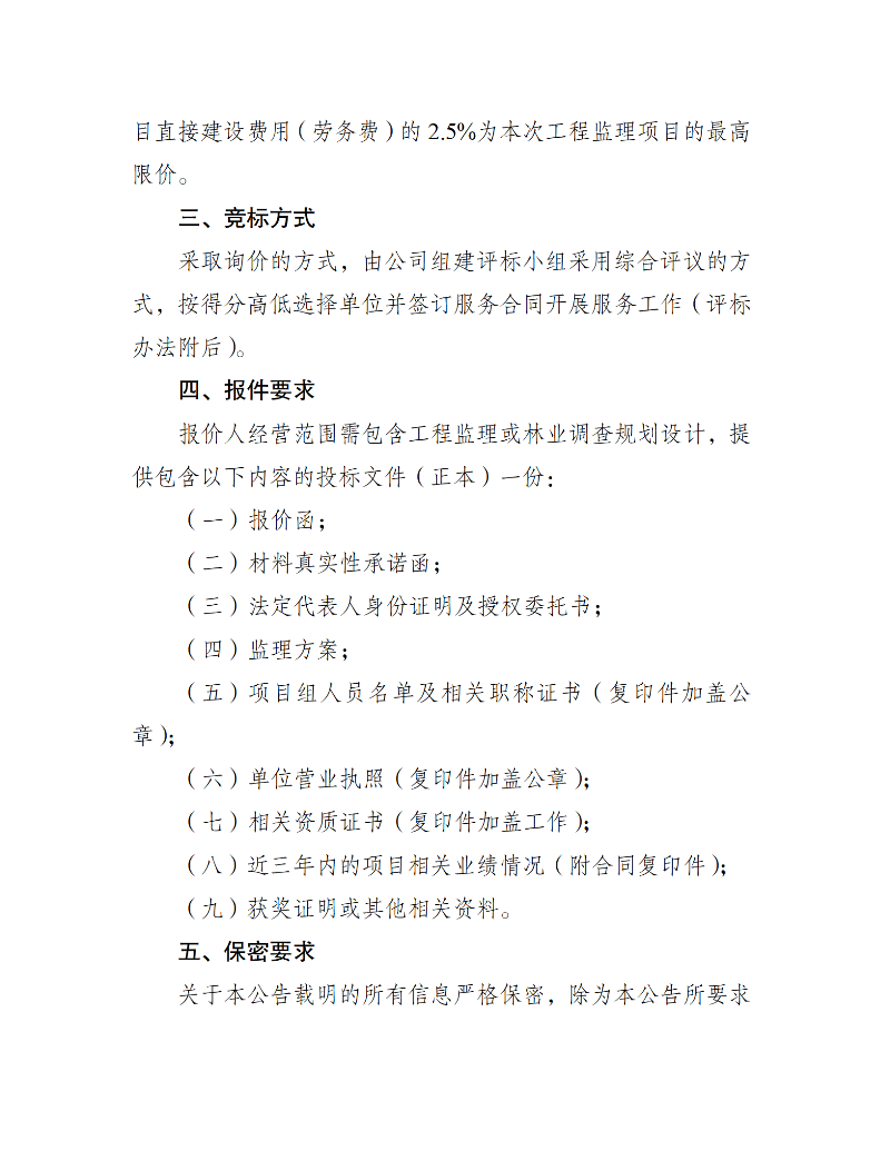 国家储备林城口县2023年森林抚育(一期)监理工作询价公告