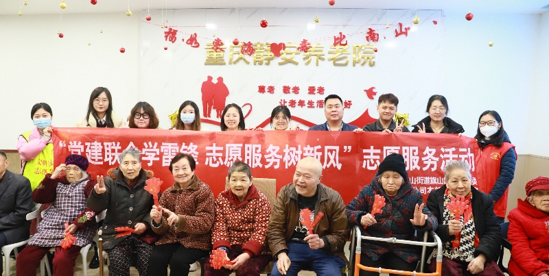 在第60个“学雷锋纪念日”来临之际,为践行雷锋精神,弘扬“尊老、爱老、敬老、助老”的中华民族传统美德,传递正能量。2月23日,重庆林投公司党总支联合龙山街道旗山路社区党委走进渝北区静安养老院,开展“党建联合学雷锋 志愿服务树新风”志愿服务主题活动,并为老人送上了水杯、毛巾、牛奶、面包等慰问品。