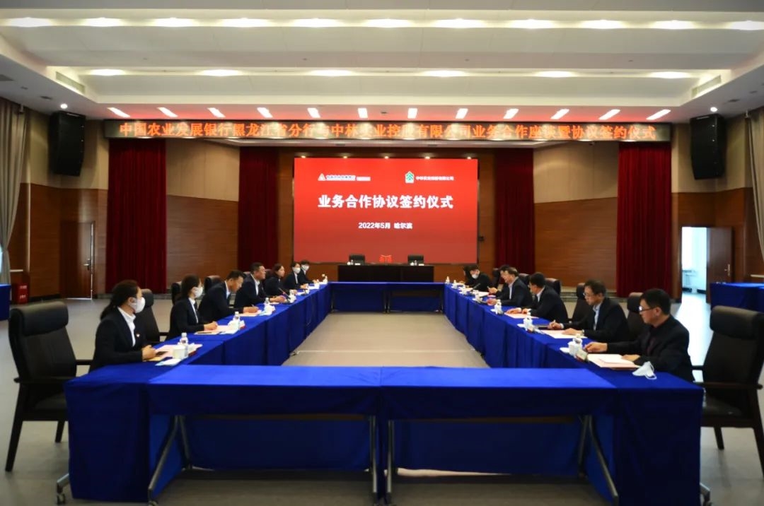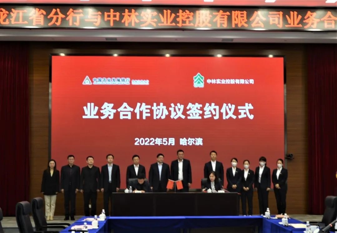 5月18日下午,中林实业与中国农业发展银行黑龙江省分行在哈尔滨举办业务合作签约仪式。公司党总支书记、董事长陈永广,省农发行行长黄奕忠出席签约仪式并致辞。公司党总支委员、副总经理杨雪,省农发行副行长李嶙峋分别代表双方签署协议。