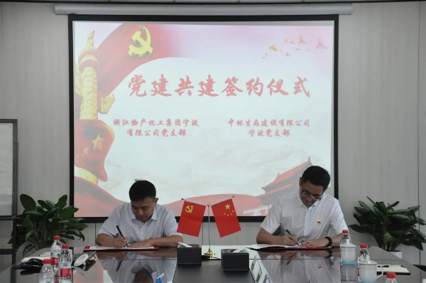 8月24日,中林生态建设有限公司宁波党支部与浙江物产化工集团宁波有限公司党支部举行了党建共建签约仪式。中林生态建设有限公司总经理郭巧玲、宁波党支部书记宋悦和浙江物产化工集团宁波有限公司党支部书记周剑凌出席活动。