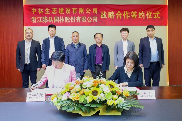 中林生态企业管理部相关负责人,滕头园林执行总裁朱锡君、工程副总经理姚伟军、行政总监丁晓飞共同出席了签约仪式。
