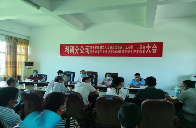 2020年7月8日上午,科研分公司第十五届职工大会第五次会议、工会第十二届会员大会第三次会议暨2019年度先进生产(工作)者大会在组培科研楼会议室召开。雷林公司副总经理、工会主席王锐同志和工会副主席陈穆光同志莅临指导,科研分公司全体在职职工参加会议。