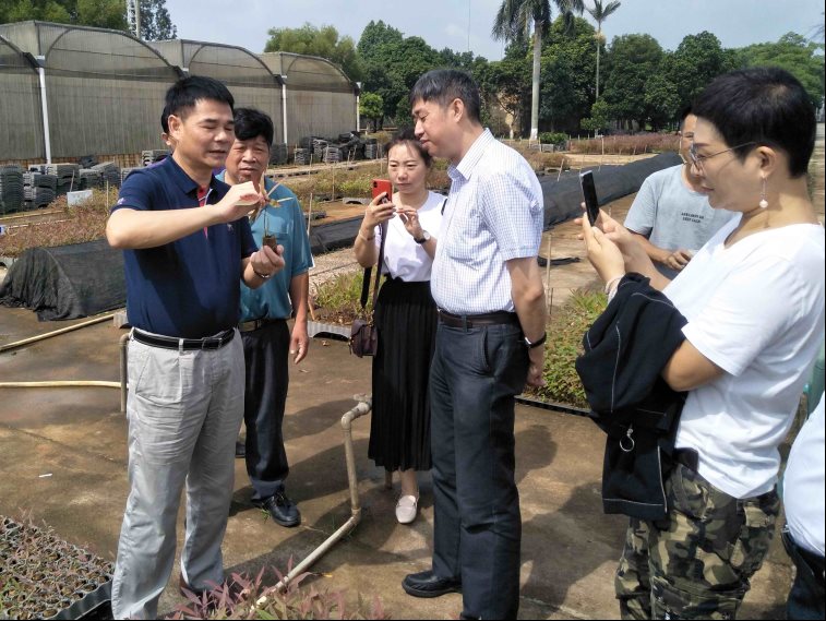8月27日上午,公司党委书记庞统带领林产品集团公司党委书记冀宝钧一行到科研分公司参观指导,了解桉树苗木繁育的工作流程。