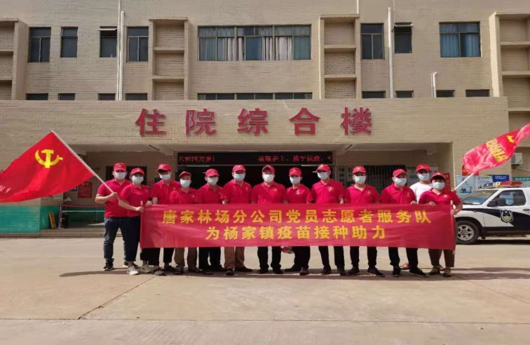 6月24日,唐家林场分公司党总支组织党员志愿者服务队,到杨家镇卫生院开展“为群众办实事为疫苗接种助力”的主题党日活动,把党史学习教育成果转化为“为群众办实事”,充分发挥党员的先锋模范带头作用。