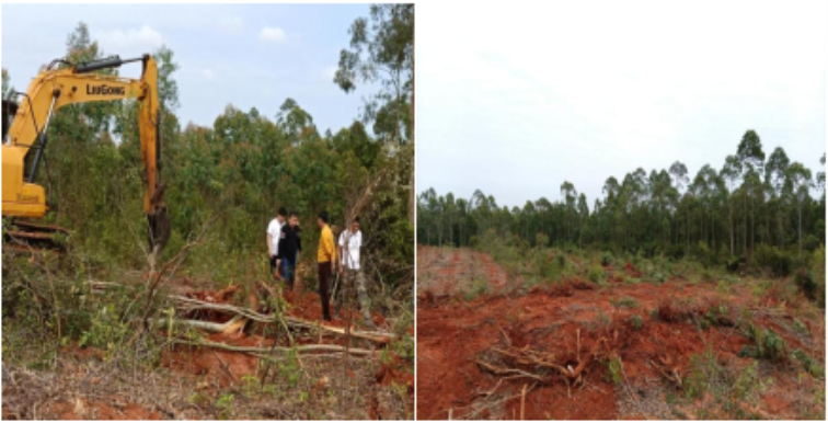 公益林队2052号小班为今年第二批采伐对象,在采伐过程中,分公司组织进行林地全面排查,发现该小班边缘被周边村民长期侵占种植桉树。为了严厉打击非法侵占国有林地的行为,切实维护国有土地的完整性和合法权益,分公司决定利用采伐的有利时机,对被群众非法占种的林地进行依法收复。