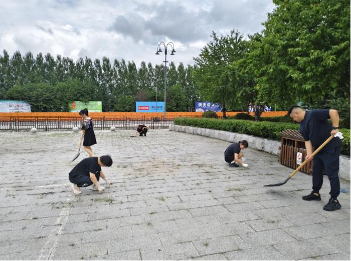 活动现场,大家手持铁锹、扫帚等清洁工具,重点针对近期雨水冲刷后暴露的卫生问题,对办公楼前的杂草、绿化带内的隐藏垃圾以及排水沟渠等区域进行了“地毯式”清理。党员干部以身作则,带头深入到杂草丛生的区域奋力清扫,杂草、烟头、纸屑、塑料包装等被一一拾起,装袋清运。尽管天气闷热,汗水浸湿了衣衫,但大家干劲十足,以实际行动扮靓园区,为党庆生。