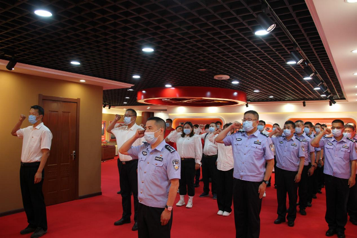 在六大展厅,全体党员面对党旗,举起右拳,以铿锵有力的铮铮誓言宣誓,重温入党誓词,表达着对党的忠诚,铭记党员职责,决心以更加饱满的精神为党的建设添砖加瓦。