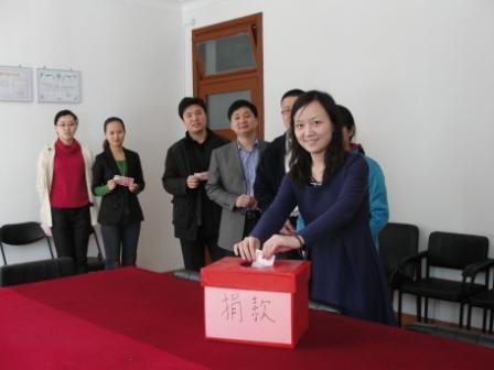 在捐款献爱心之余,大家还纷纷表示,要节约用水用电,积极响应国家低碳经济的号召,反对和杜绝浪费,以实际行动支援灾区。