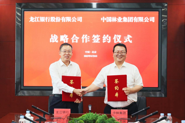 8月9日下午,中国林业集团与龙江银行在京签署战略合作协议。中林集团党委书记、董事长余红辉,龙江银行党委书记石玉龙出席并见证签约。中林集团党委委员、总会计师王迎财,龙江银行副行长王正军分别代表双方签约。